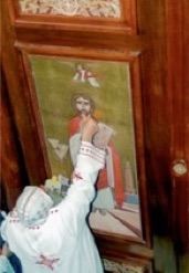The original icons for the iconostasis of St Mark’s Coptic Church, Kensington, London, were written by Prof. Fanous between 1976-78. The iconostasis was extended with 8 further icons by Dr Stephane René, in 1998 and was consecrated the same year by H.H. Pope Shenouda III (left)